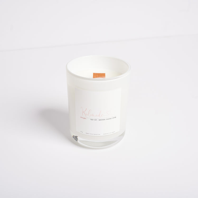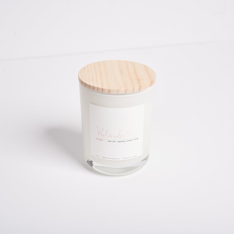 Hand-poured: CandleScience Clean Scents™. Coconut apricot wax blend. Frosted glass vessel. Wood lid. Wood wick.